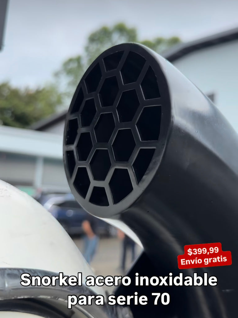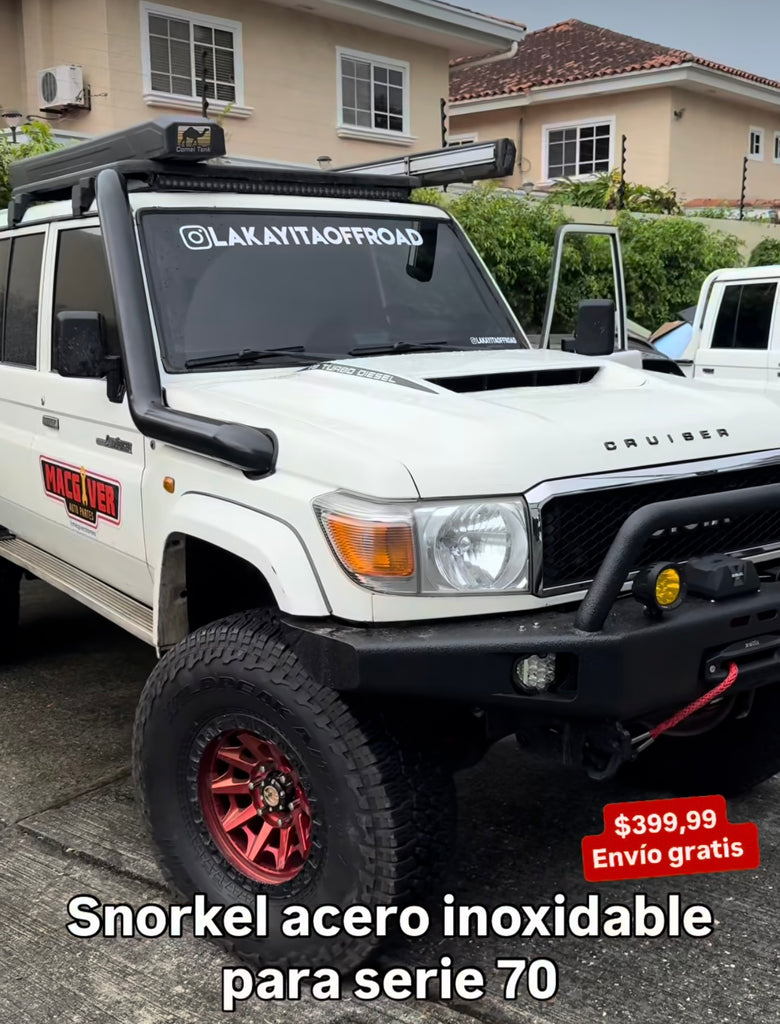 Snorkel de acero inoxidable para LC serie 70, estilo australiano. Por ser un snorkel de alta calidad, no se tuesta con el sol y no deja pasar el agua. Además disfrutarás del sonido del “poder” que tanto te gusta! 😎
